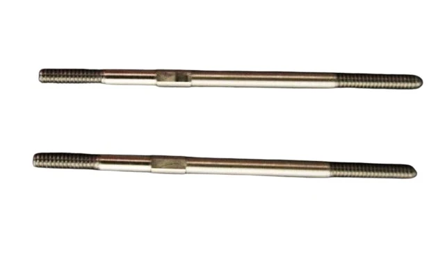 A pair (2) of high quality 55 mm long stainess steel control rods with M2 threads cut at both ends. Thicker in the center to give extra rigidity and strength.