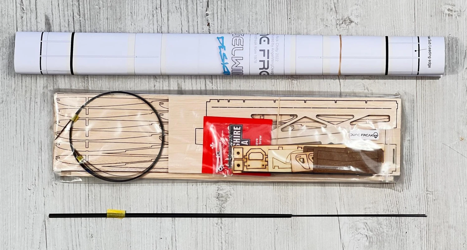 Designed by Nick Chitty, reworked for laser cutting by Anglelwing Designs, the Dune Freak is a superb light wind slope soarer optimised for dunes and other tiny slope soaring sites. This beautiful balsa and carbon flying wing can also be flown from the flat using our Mini High Start.