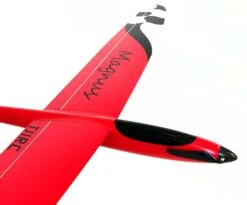 The two piece wing is available in glass and carbon layups. The glass version has a fair amount of carbon and is very strong. The full carbon version is about 50g heavier and is extremely strong and rigid and will be ideal for high power setups. The wings are kept in place with a very substantial carbon joiner. The tailplane is removable making the model very easy to store and transport. The electric fuselage is glass with carbon reinforcement and is wider than the slope racer version, allowing a substantial motor and battery to be installed. The large canopy hatch gives great access to the front, making for a very easy powertrain installation and quick battery changes. The elevator servo is under a hatch in its own pocket molded into the fuselage, just to the rear of the wing trailing edge. This makes for a very short elevator control run and also leaves the front fuselage free for the electrics.